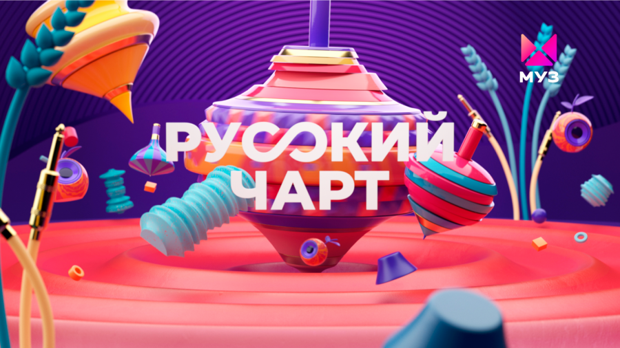 更新也影響了電視頻道的主要圖表——他們的風(fēng)格變得更加周到,這樣當(dāng)切換到 MUZ-TV 時,觀眾可以立即了解節(jié)目的情緒。例如,“Russian Chart”的視覺形象關(guān)聯(lián)地追溯了“a la rus”的主題——圖形包的主要女主角是陀螺,或者更確切地說,是一個完整的五彩“家庭”,它代表了圖表的命中。