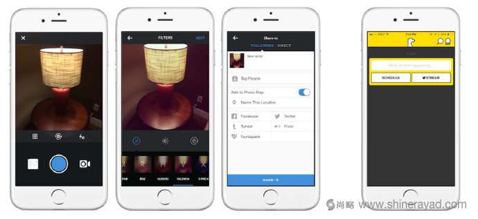 發(fā)布到Meerkat上只用點(diǎn)一下,發(fā)布到Instagram上只用點(diǎn)三下