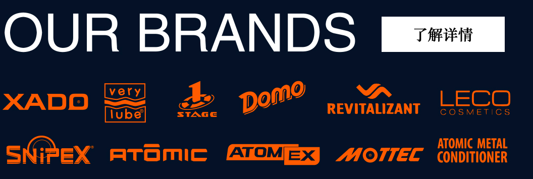 XADO化工集團(tuán)的主要品牌。1991年注冊。1999年,第一批使用XADO商標(biāo)的產(chǎn)品出現(xiàn)在汽車商店。如果你在包裝上看到了XADO的標(biāo)志,這意味著這是一個創(chuàng)新的產(chǎn)品,包含了活力。它是XADO商標(biāo)的主要特征和獨(dú)特的標(biāo)志。目前,XADO是最大的創(chuàng)新汽車護(hù)理產(chǎn)品和潤滑油制造商之一。為修復(fù)和修復(fù)任何類型的車輛和機(jī)制而設(shè)計(jì)的XADO產(chǎn)品,可以在全球80多個國家和各大洲購買。