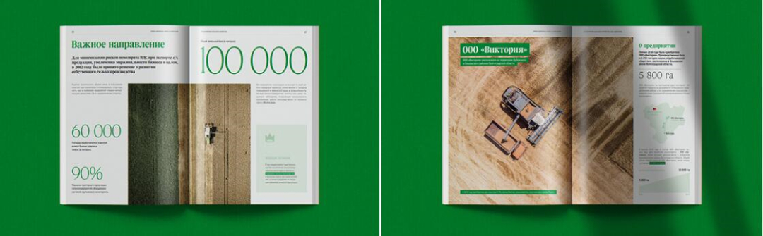 這本書分為幾個(gè)章節(jié).為了讓讀者更容易找到合適的企業(yè)或活動(dòng),每個(gè)部分都有自己的顏色。在“關(guān)于公司”一節(jié)中,這本畫冊(cè)書籍向我們介紹了公司的活動(dòng),并展示了公司活動(dòng)的規(guī)模。歷史上所有的關(guān)鍵數(shù)字和日期都是大的,企業(yè)的結(jié)構(gòu)清晰可見,插圖顯示了公司的雄心壯志。